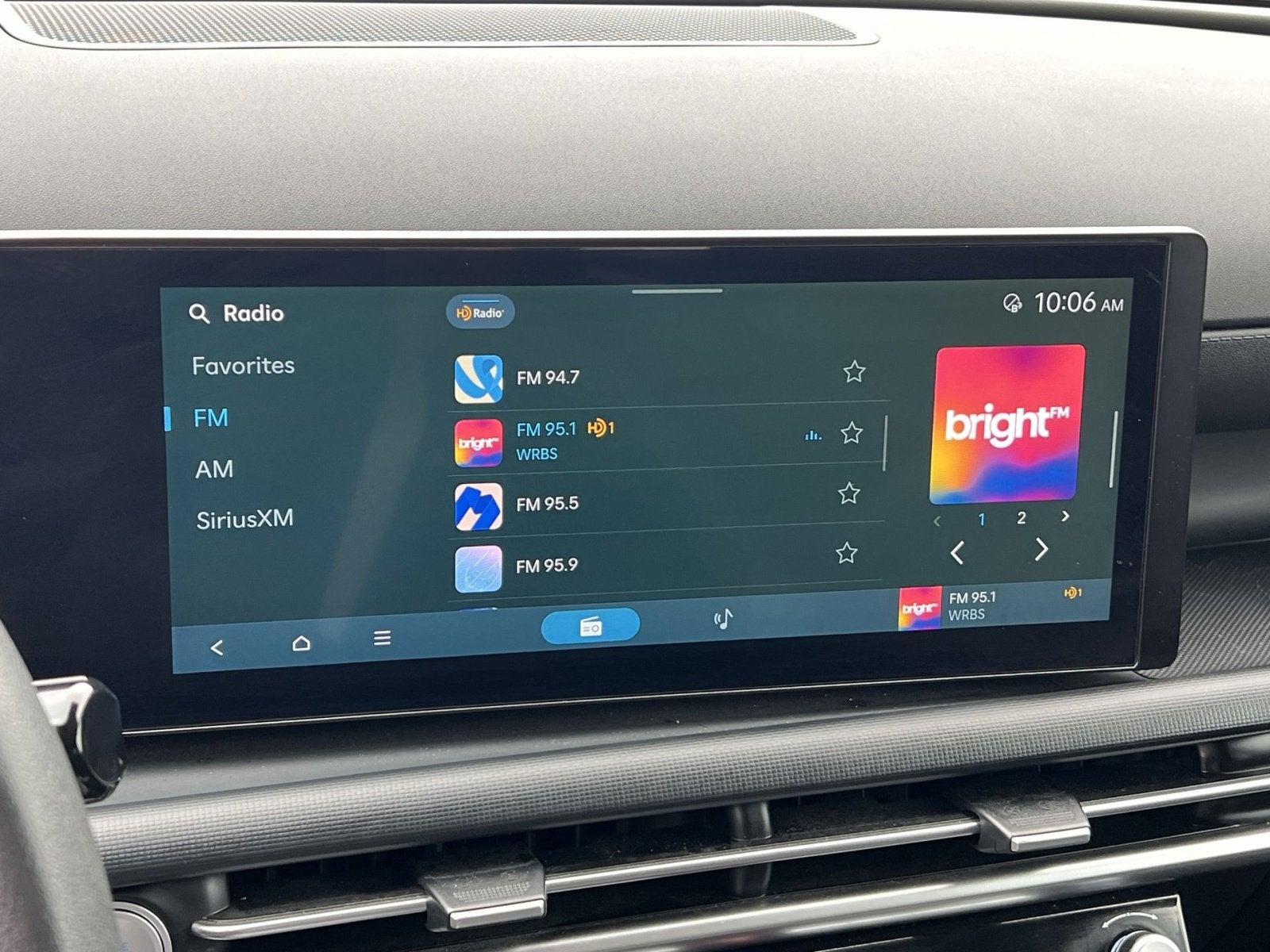 - Radio: AM/FM/HD Audio System -inc: 12.3" color touchscreen display, 6 speakers, SiriusXM satellite radio system (3-month trial subscription), wireless Apple CarPlay and Android Auto integration, controller OTA update capability, Blue Link connected car system and USB connectivity